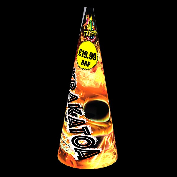 A massive Category 2 dual effect conic fountain with silver and gold effects. Starting gradually and building to an impressive crescendo, Krakatoa is not only exciting but outstanding value.